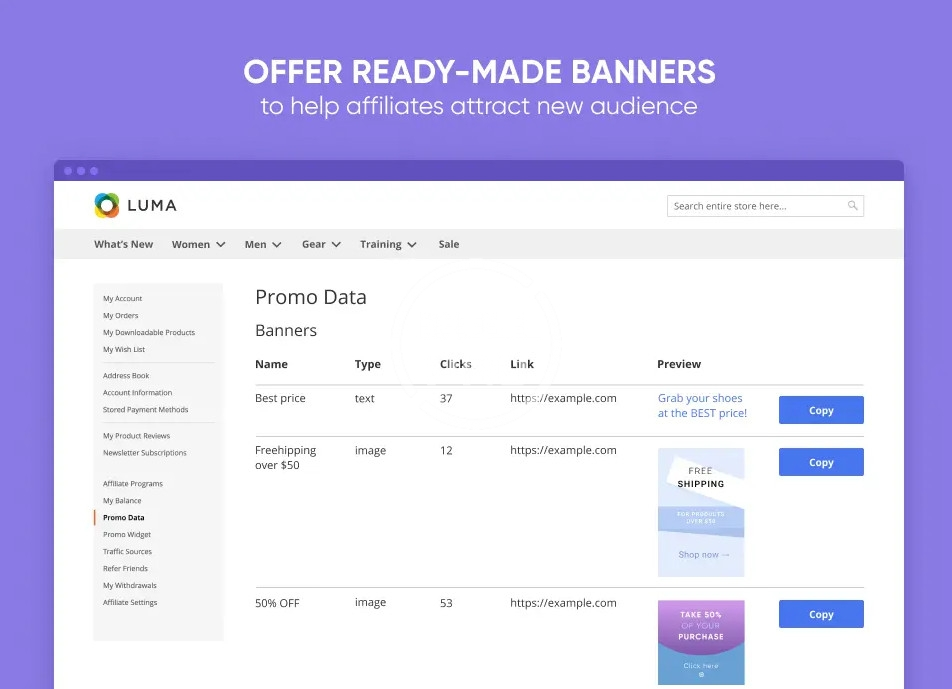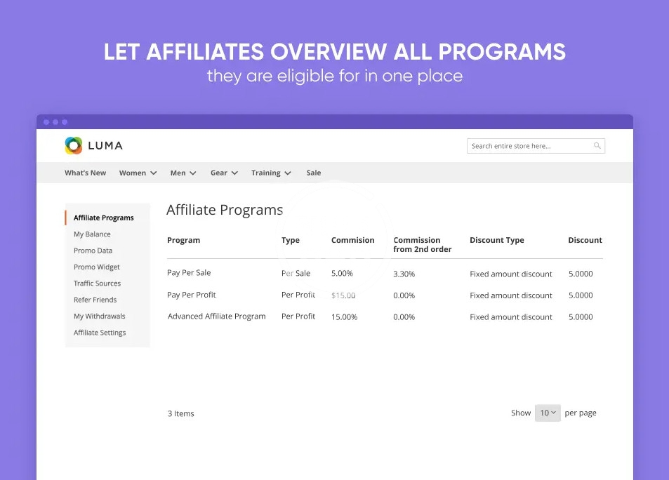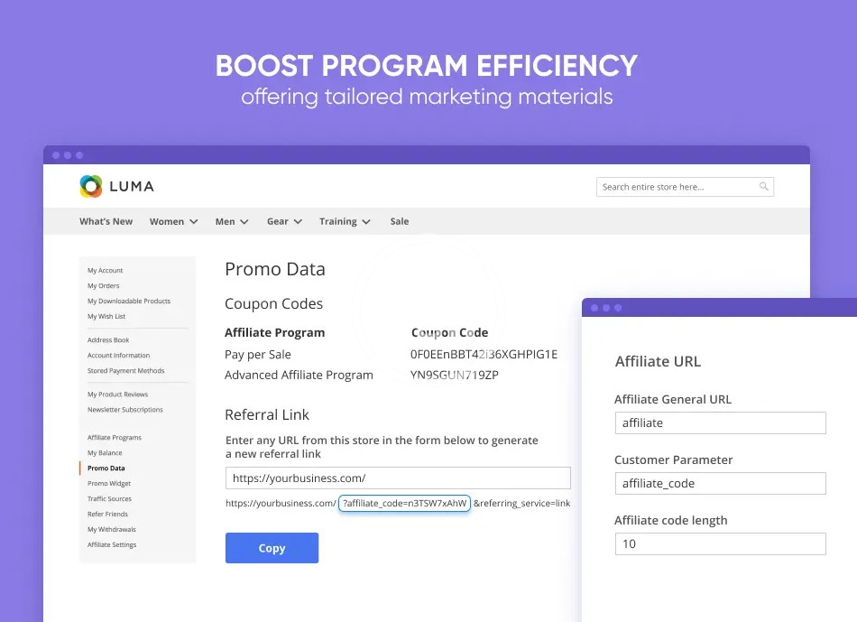 Run full-scale affiliate programs on your website to drive sales from alternative channels effectively. Provide affiliates with promo materials and detailed stats reports. Easily manage affiliate accounts, regulate commissions and track withdrawals.