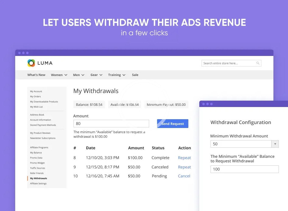 - Control affiliate accounts and transactions