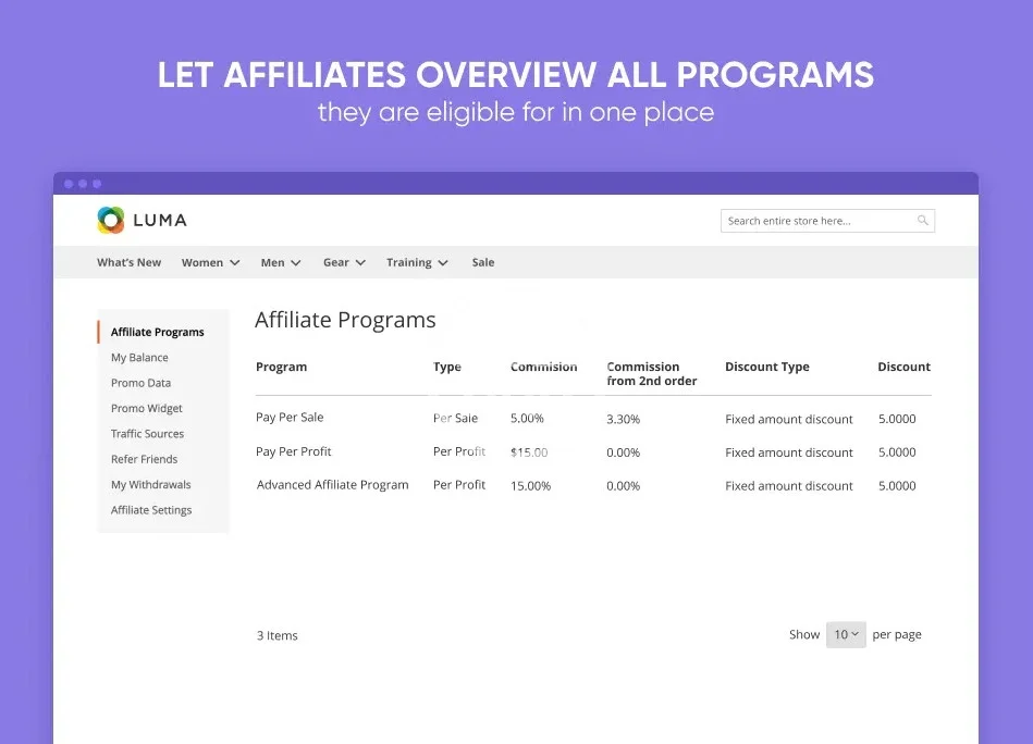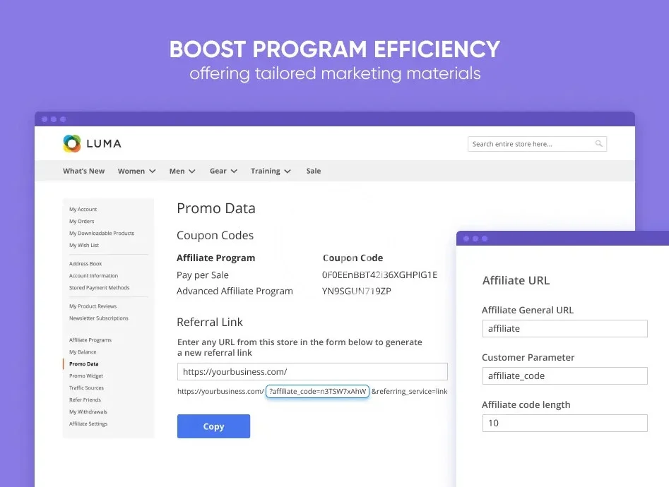 Run full-scale affiliate programs on your website to drive sales from alternative channels effectively. Provide affiliates with promo materials and detailed stats reports. Easily manage affiliate accounts, regulate commissions and track withdrawals.