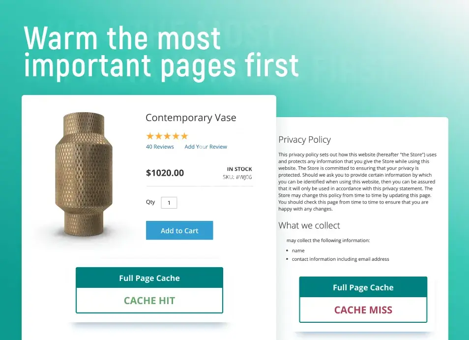 Ensure fast web-site browsing experience with Magento 2 Full Page Cache Warmer. Provide users a flawless store performance to top search rankings and attract more visitors.