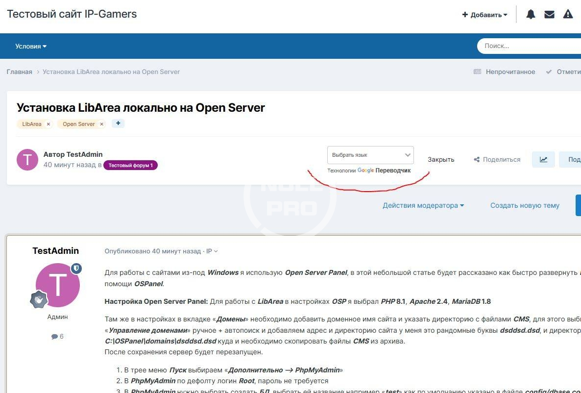 1. Automatic embedding of the Google Translate widget on forum pages.