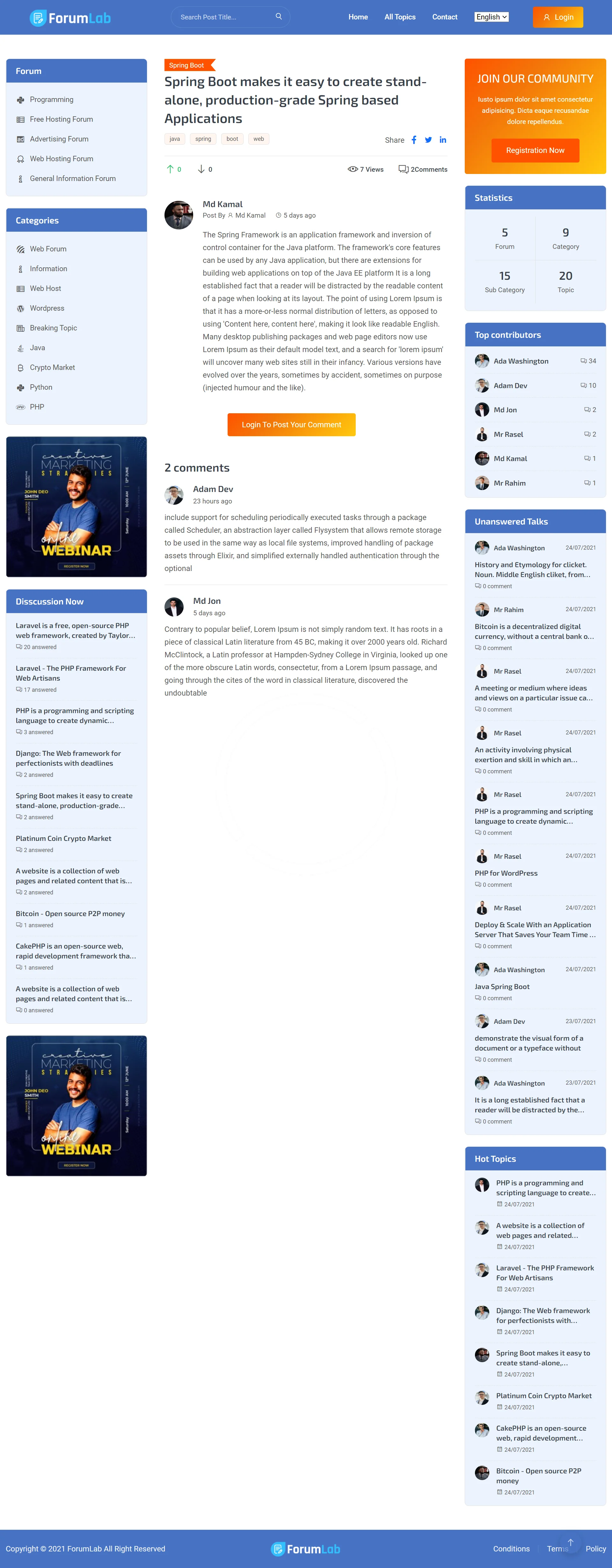 Are you looking for Forum website scripts? are you interested to start your Discussion forum website? then you are in the right place. No need to pay thousands of dollars to hire developers to build your Forum Website. No need to use common or Free Forum CMS, No need to purchase an expensive forum script. ForumLab may assist you to handle unlimited users, topics, answers, votes, shares, comments, views, and more in the easiest way you have ever seen. ForumLab is a simple and lite weight forum platform, the ready-to-go solution, takes only a few minutes to set up your website with our system. we also here to provide you best support, installation, and customization if you need it. hurry up, get your copy and start your website.