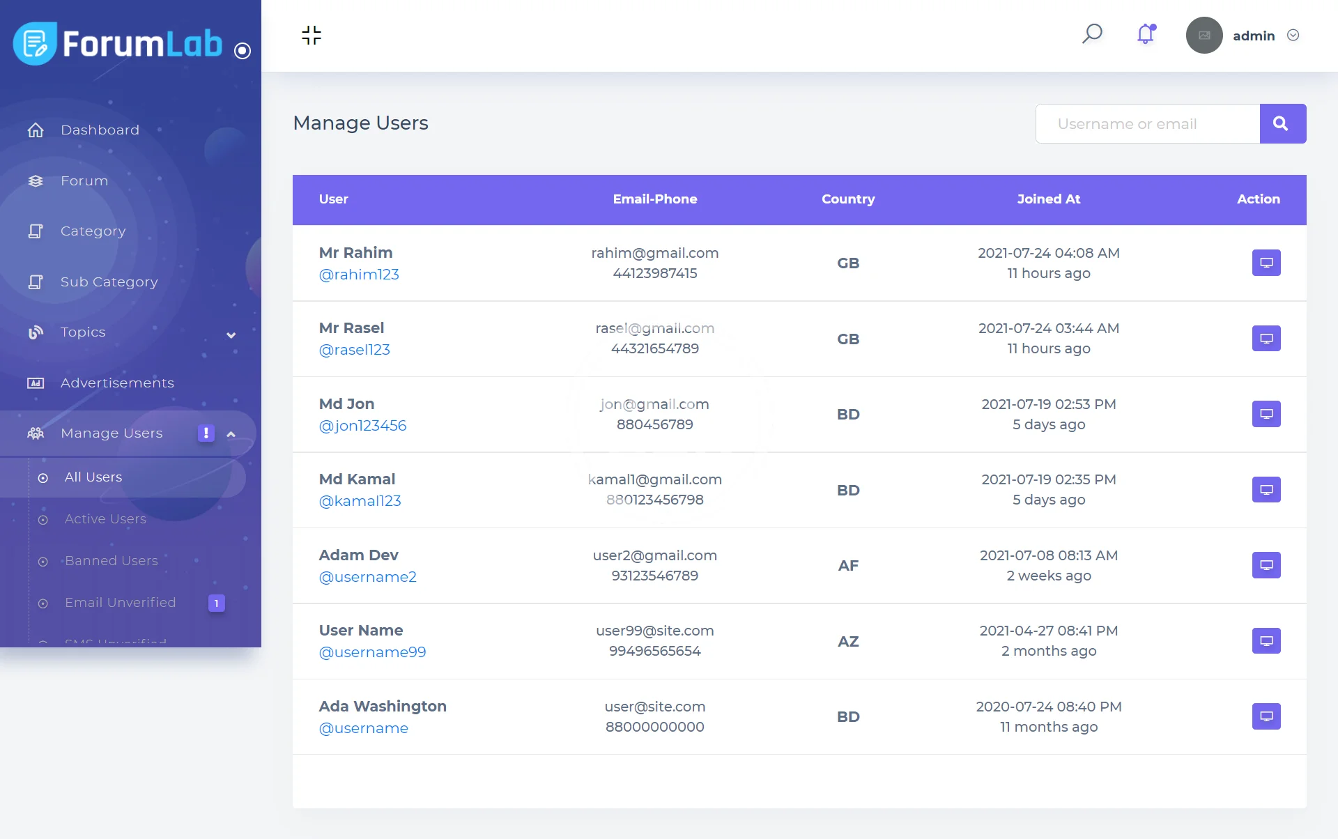 Admin Access: https://script.viserlab.com/forumlab/admin