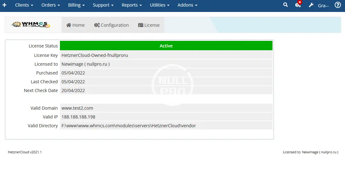 **Demo/Installation/Upgrade Video is at: https://secure.whmcsmodule.net/knowledgebase/1/Hetzner-Cloud-Installation.html **