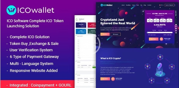 ICOWallet is the Complete Initial Coin offering Software for your CryptoCurrency Business. It has Token initialization and 6 Types of Payment gateways including Coin payment and GOURL. Here you can do any type of Coin offering services.