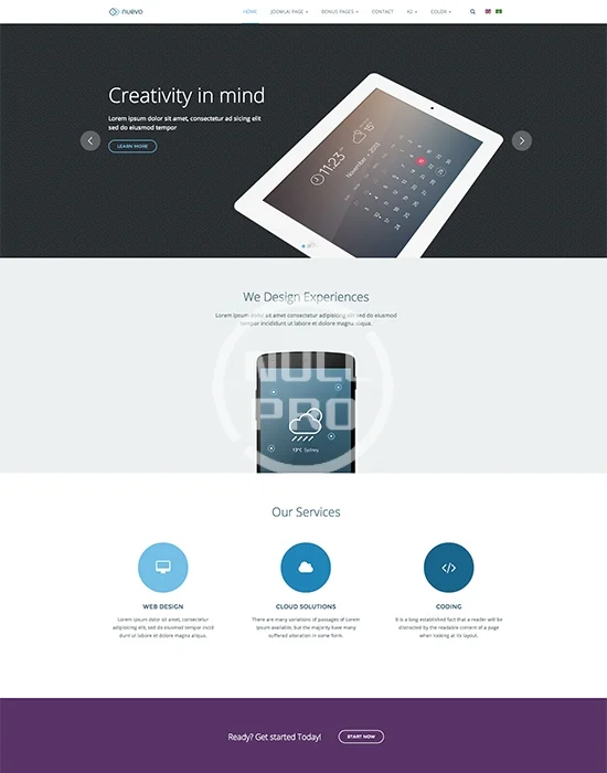 The App page responsive Joomla template for Joomla 3 & Joomla 2.5 - JA Nuevo is dedicated for apps startup or services page. It's a T3 Framework template with Bootstrap 3, RTL Language Layout, K2 Component, and responsive