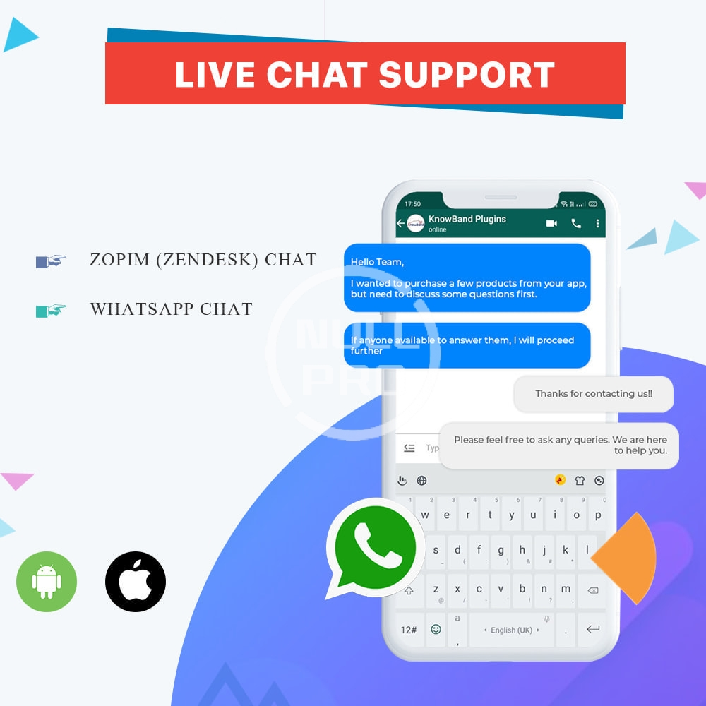 24*7 Chat Support: The PrestaShop Mobile App Creator offers two live seller-buyer chat options with Zopim & WhatsApp chat options. The mobile shopper gets to ask for support directly from the store owner.