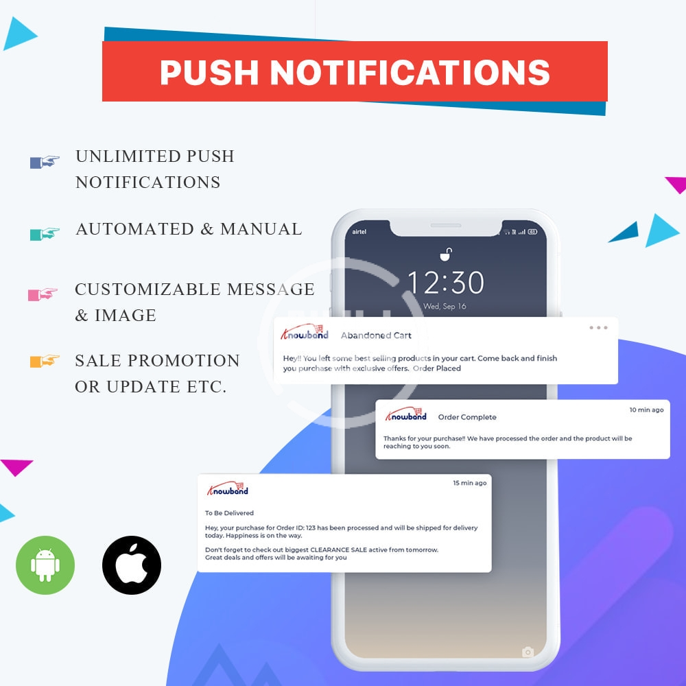 Unlimited Push Notifications: The PrestaShop Mobile App Maker offers a personalized push notification tool in mobile apps. The store admin can send promotional push messages regarding daily deals & highlights of their store. The addon provides both automated (Order Creation/ Order Status Update/Abandoned Cart) & manual notifications to market & promote your app products.