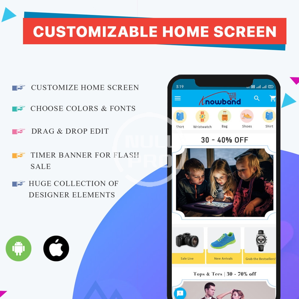 Flexible Home Screen Layout: Your app home screen speaks for your store. The PrestaShop Mobile App Maker offers a fully customizable home screen with multiple elements & attributes like -