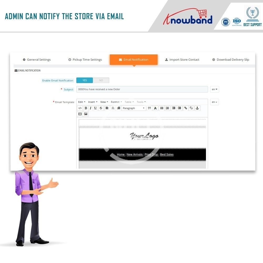 - The Prestashop pick-up module has ready-made email templates for sending a notification to the store about the pick-up order.