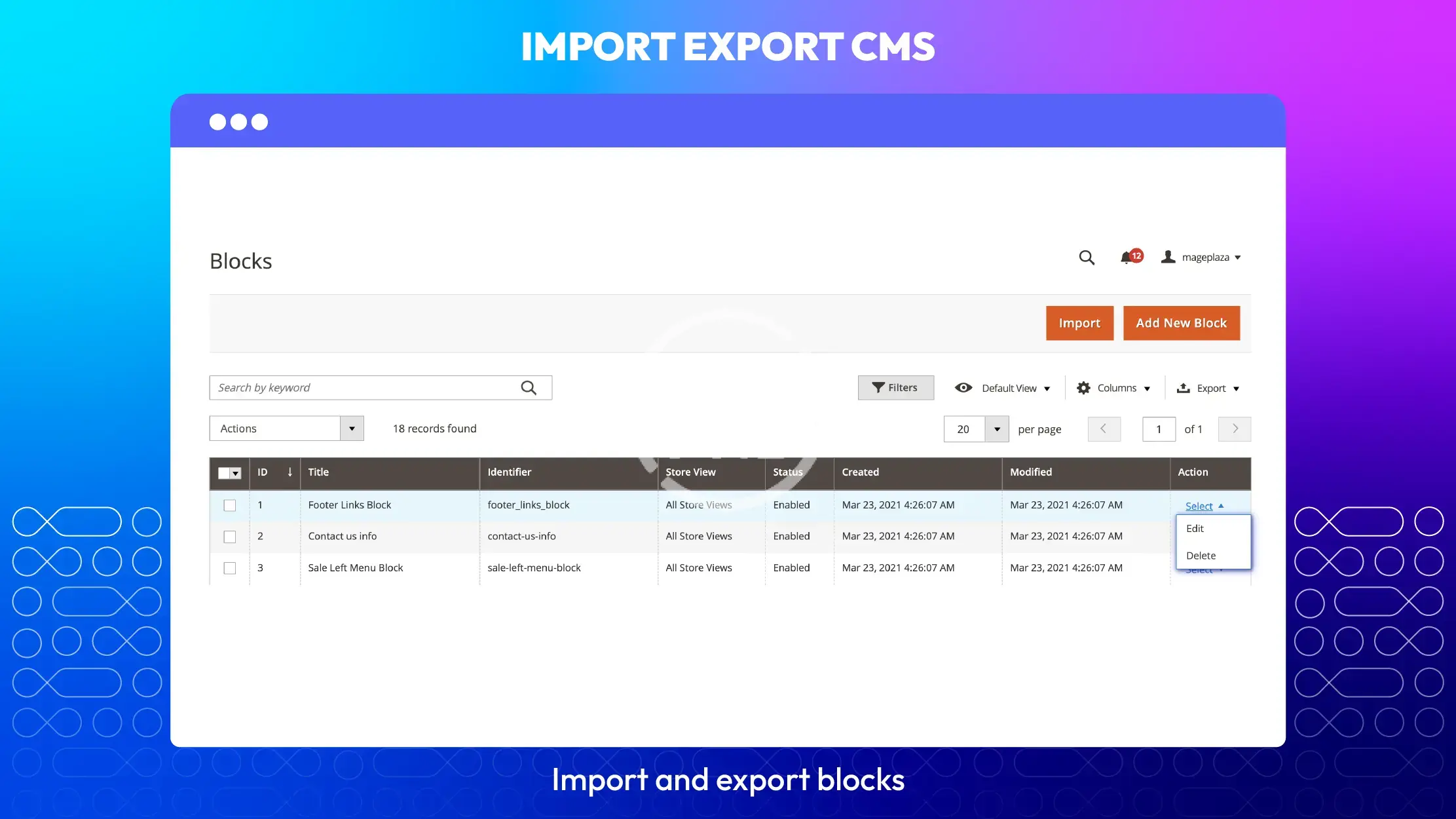 Mageplaza - Import Export CMS for Magento 2