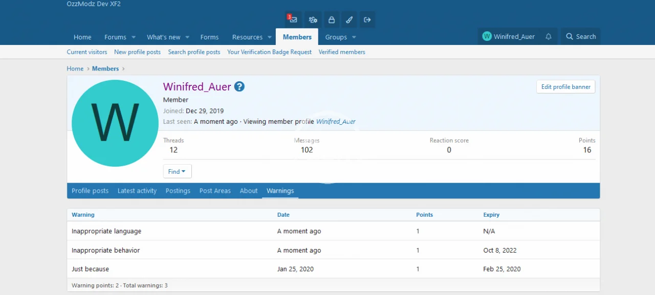 [OzzModz] Users Can View Their Own Warnings 2.0.0