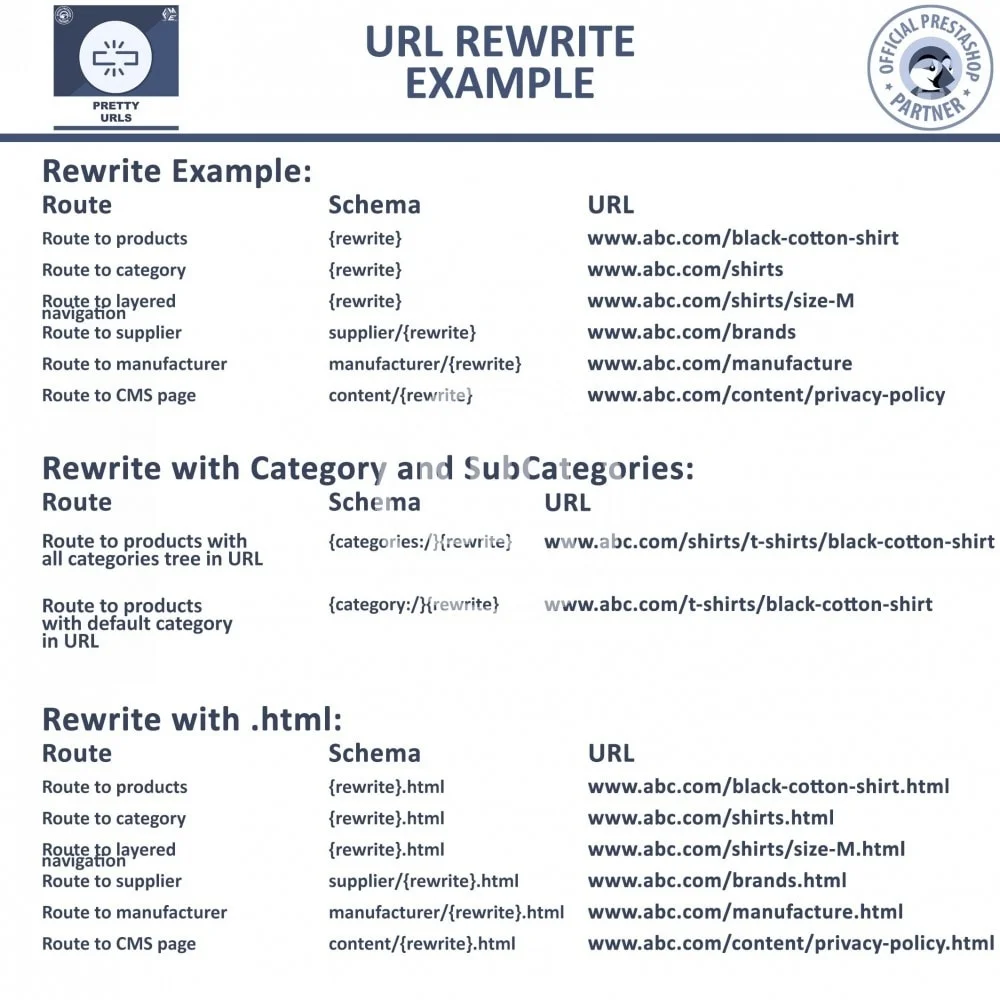 Модуль расширений URL для PrestaShop делает URLs вашего магазина оптимизированными для поиска автоматически удаляя.