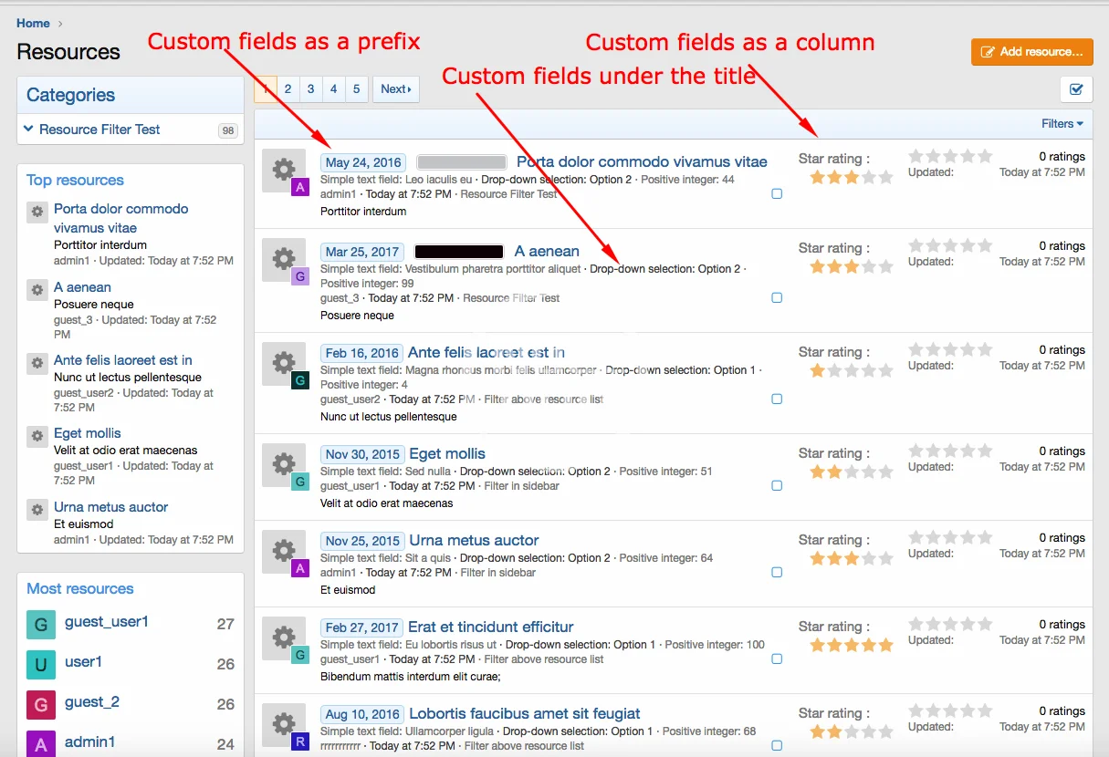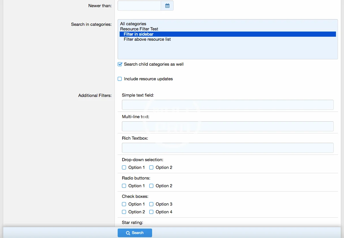 The add-on allows to filter and search resources based on Resource fields. The idea is to allow admins to utilize the power of custom fields to turn their resources into Directory, Classifieds, Shop or other types of content, for which filtering the data based on custom fields is vital.
