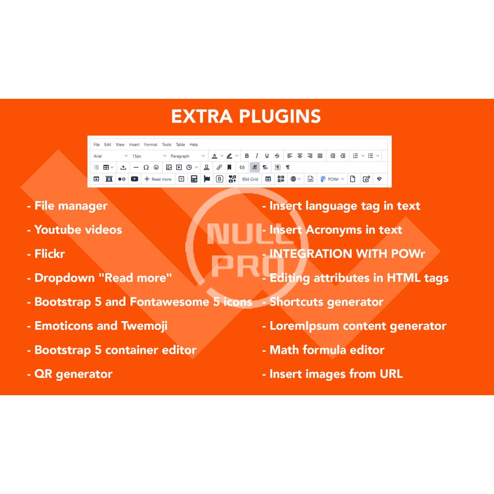 - Editor Based on the latest version of the official TinyMCE 5 editor.