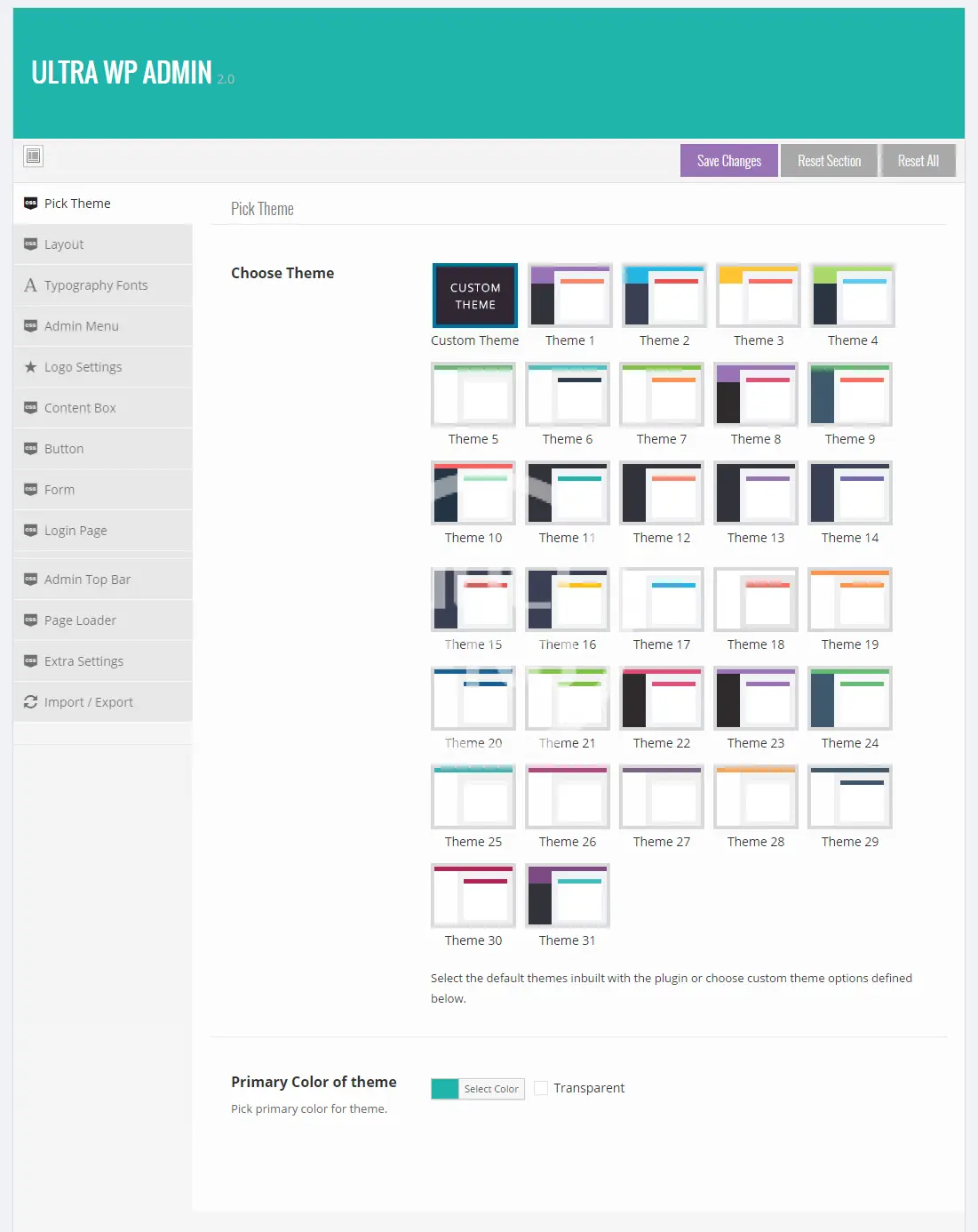 Along with White Label Branding features, It comes with 30 Awesome Inbuilt themes and gives you an option to Create your own theme. You can also control appearance of Admin Menu, Top Bar, Buttons, Content Boxes, Typography, Forms, Text and background colors, logo and so on…