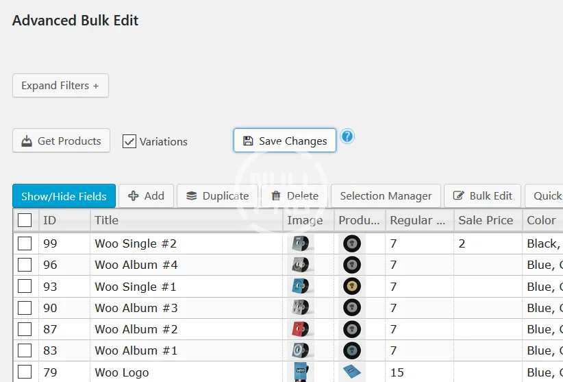 Быстро создавайте скидки в больших количествах, вариациях товаров, изменяйте запасы, редактируйте атрибуты, изменяйте изображения товаров в вашей веб-сторе WooCommerce. Товары и вариации отображаются в таблице подобно электронной таблице и могут быть редактированы в целом или отдельными ячейками.