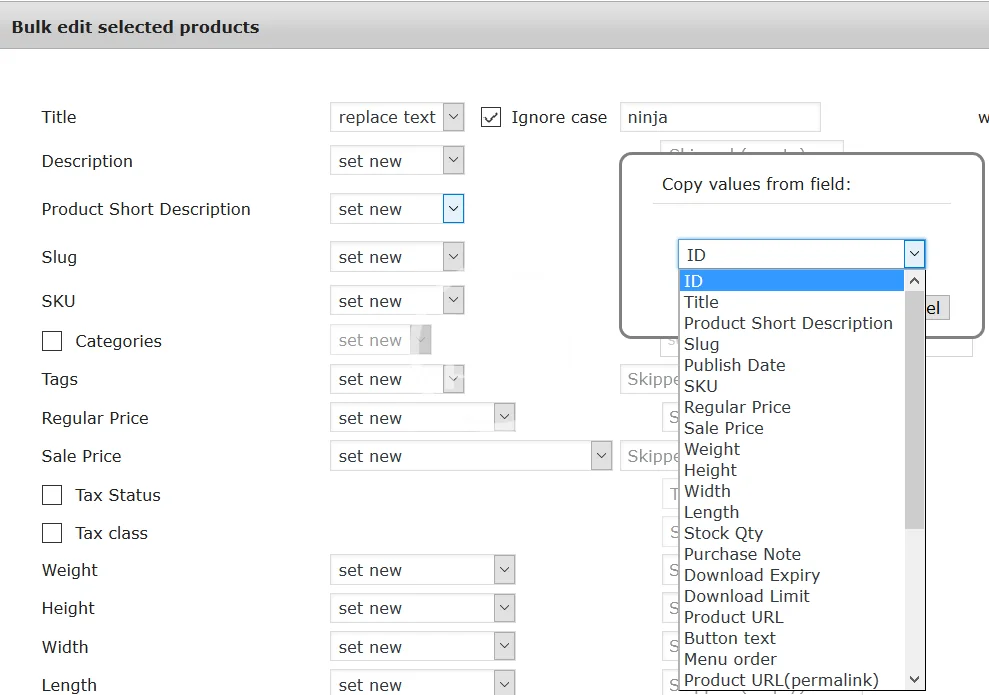 [*]Связанный редактирование выбранных товаров (быстрый булковый редактирование).