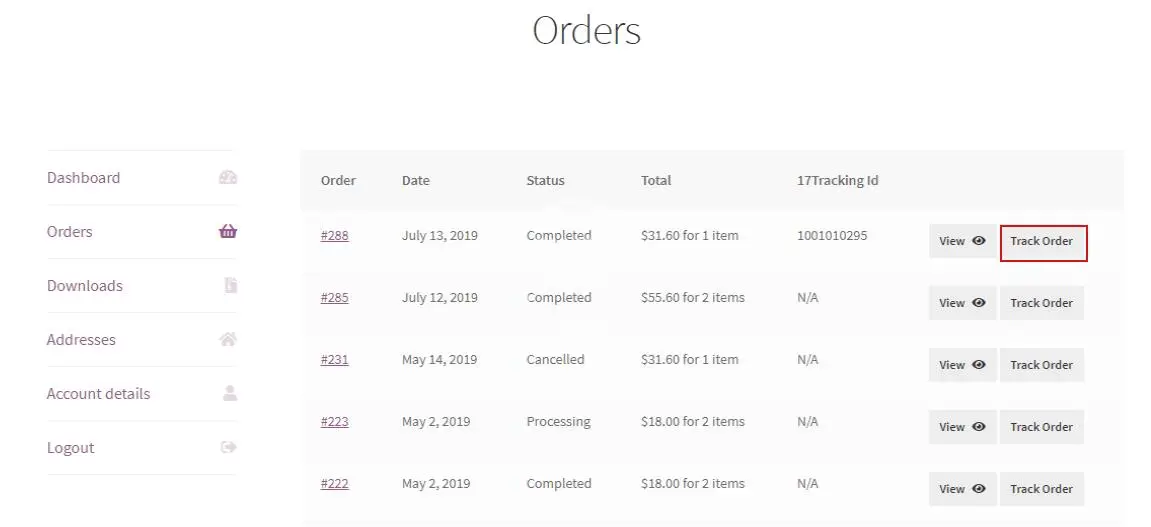 The whole process of the tracking system is simple and streamlined which keeps the customer aware of their WooCommerce order status. Customers can track their orders with the order numbers and tracking URLs.