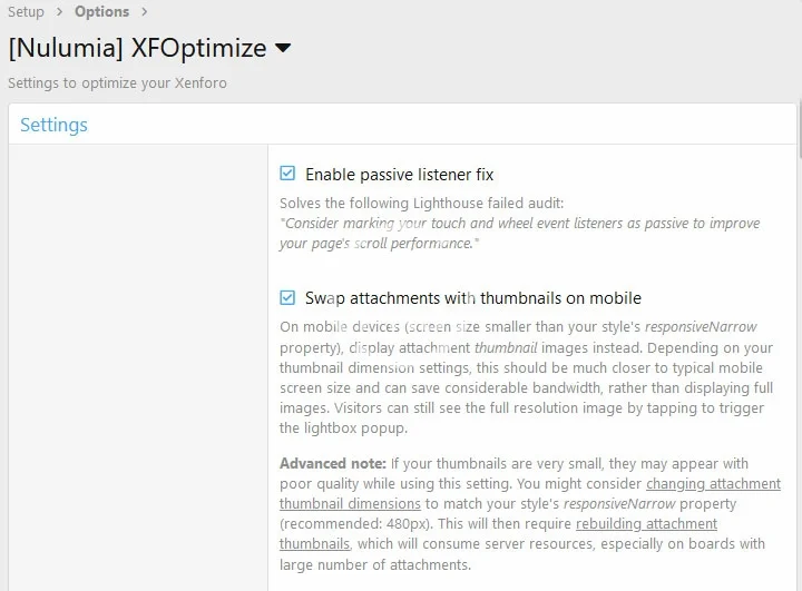 Advanced note: If your thumbnails are very small, they may appear with poor quality while using this setting. You might consider changing attachment thumbnail dimensions to match your style's responsiveNarrow property (recommended: 480px). This will then require rebuilding attachment thumbnails, which will consume server resources, especially on boards with large number of attachments.