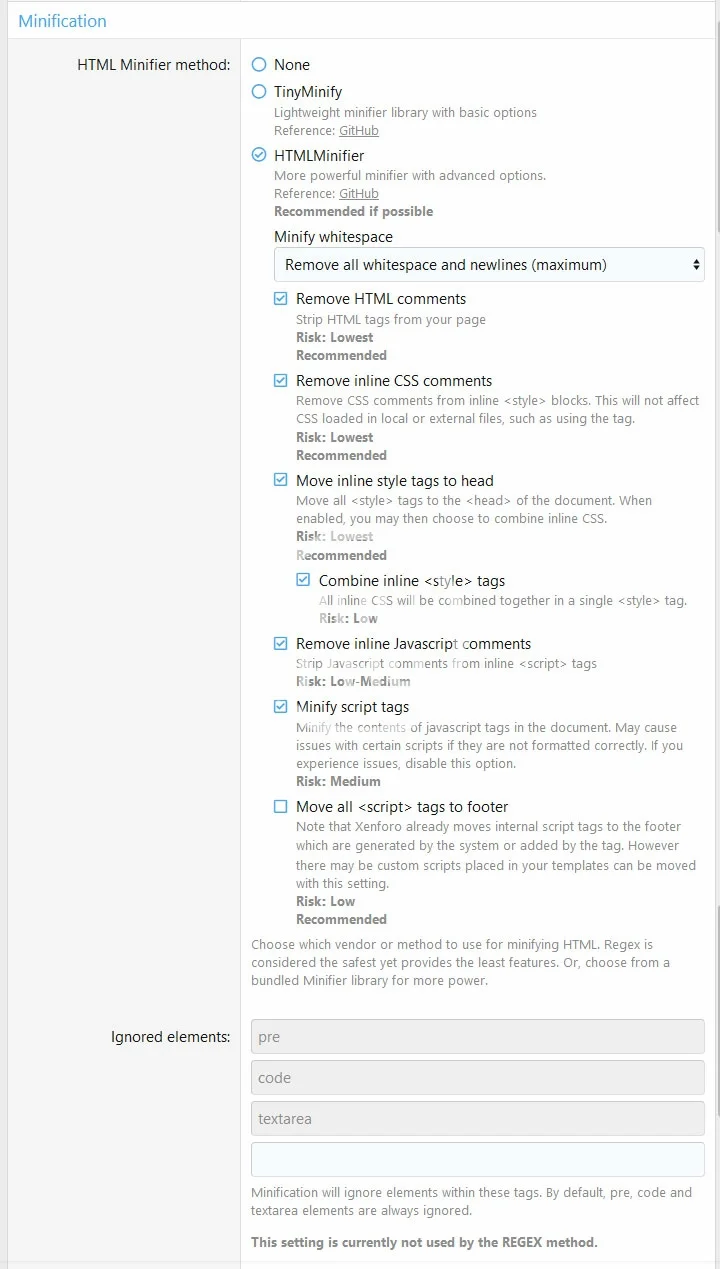 Customize Xenforo minification features such as:
