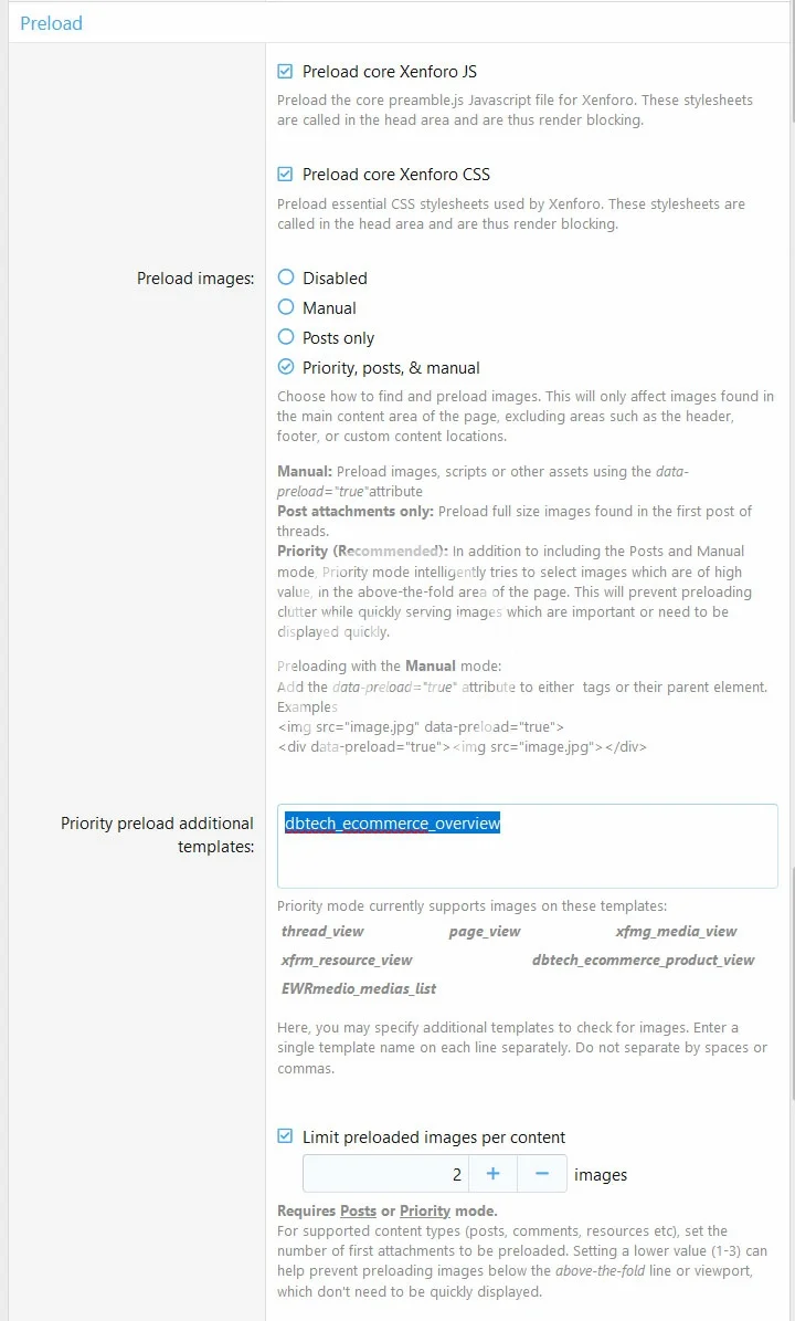 - Preload core Xenforo resources
