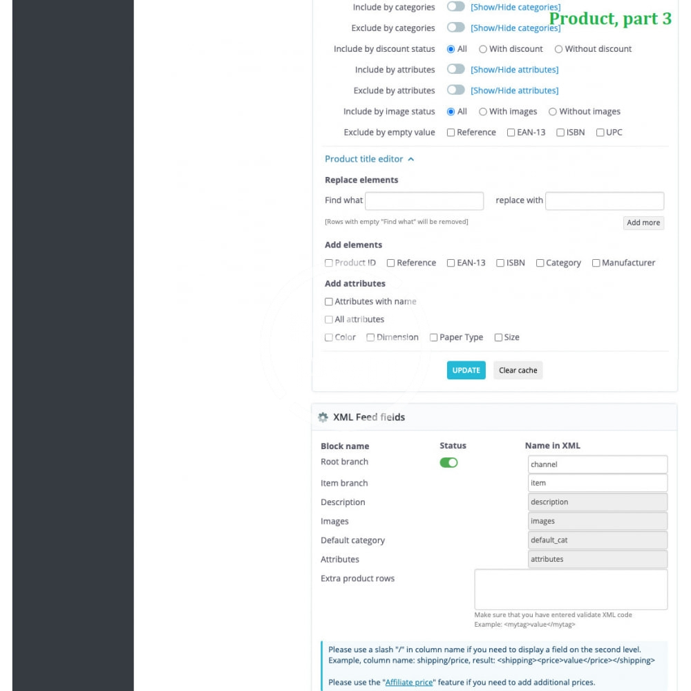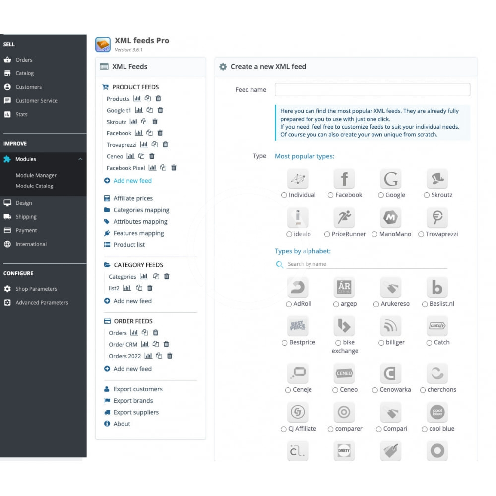 Export products/orders/categories/customers to XML files. Compatible with Google, Facebook, Skroutz, Instagram, Pinterest, idealo, Spartoo, Trovaprezzi and much more. You can always change the settings and create an individual XML.